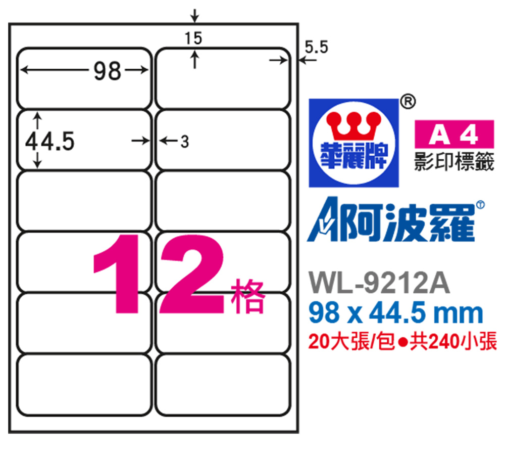 • 名稱:阿波羅A4自黏標籤(12格)