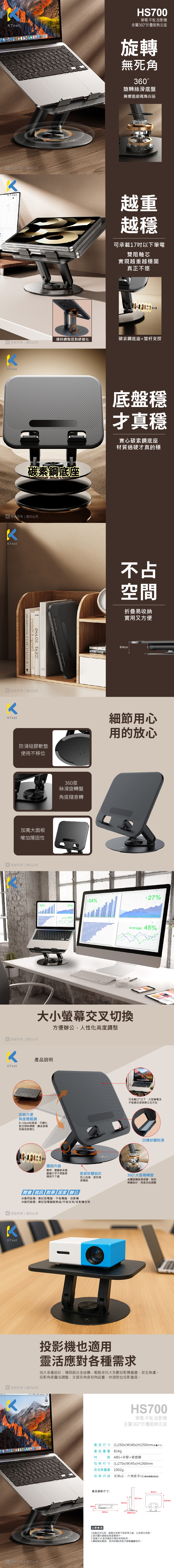Kt.net HS700筆電.平板.投影機金屬360折疊散熱支座