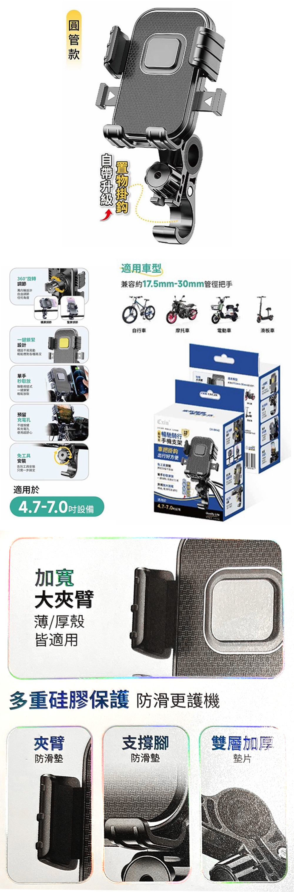• 適配車型 : 電動車/摩托車/自行車/滑板車等