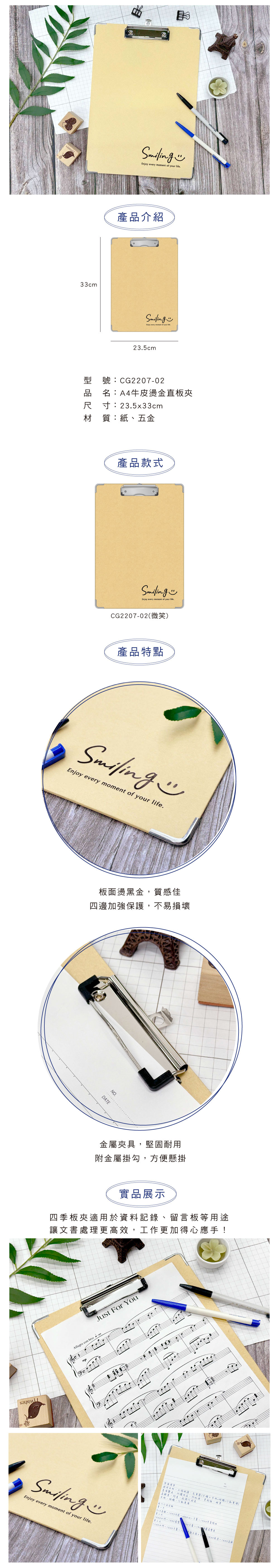 A4牛皮燙金直板夾-微笑 CG2207-02