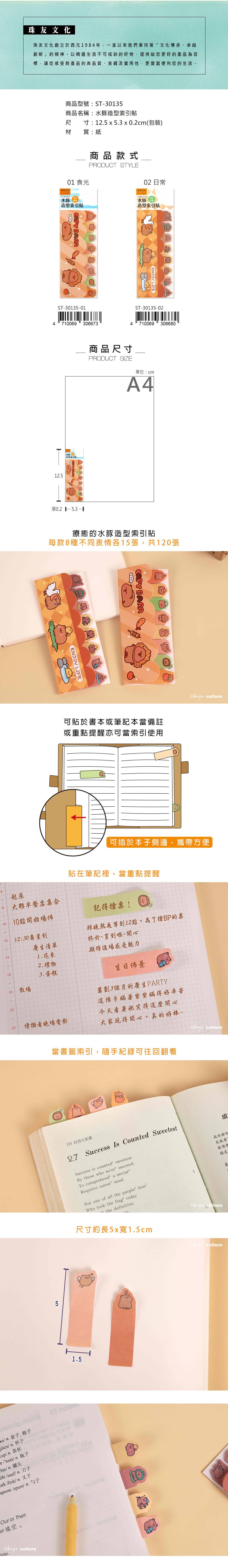 • 品名:水豚造型索引貼