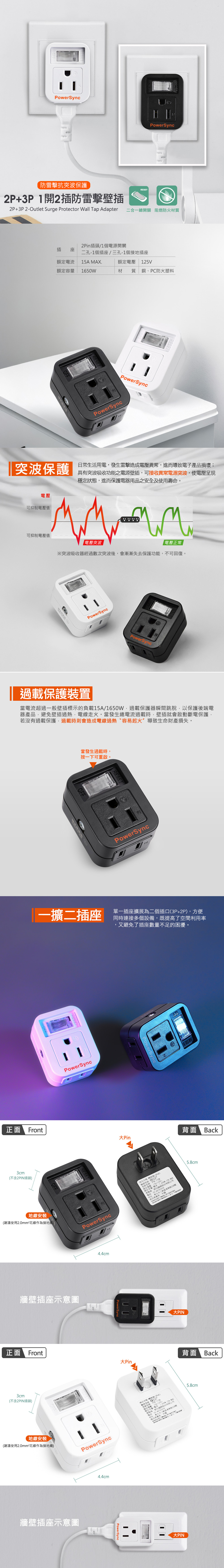 • 插座:2Pin插頭 / 三孔-1個插座 / 二孔-1個插座