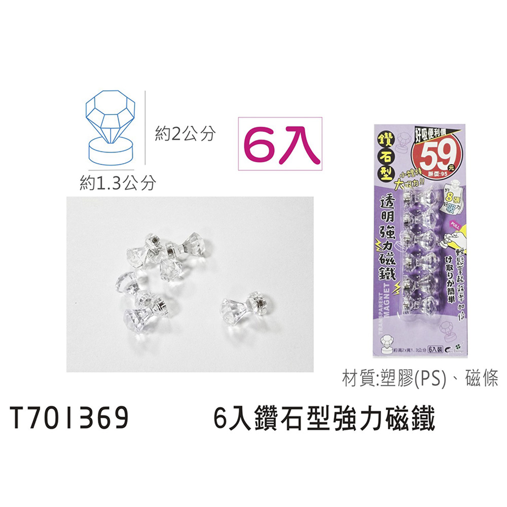 • 品名:鑽石型強力磁鐵-6入