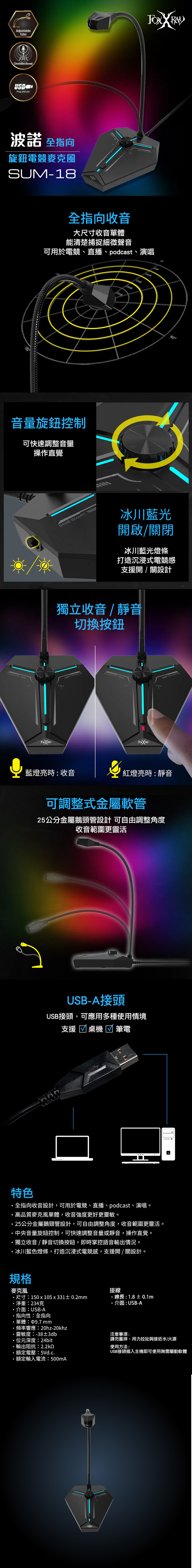 • 名稱:FOXXRAY 波諾全指向旋鈕電競麥克風