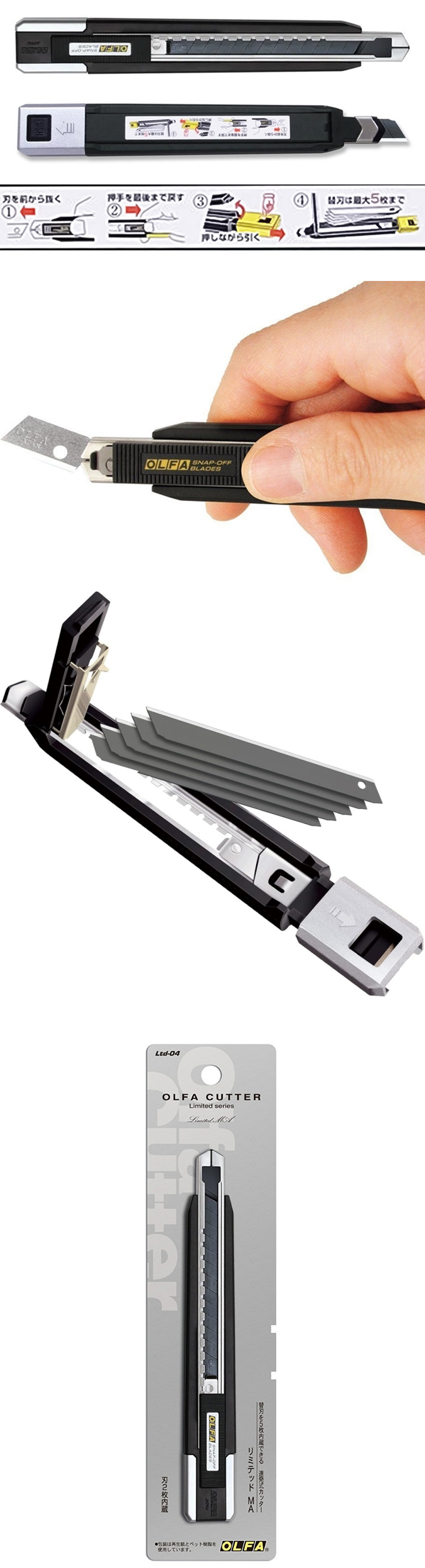 • OLFA獨特創新自動入刃設計,刀柄內可以裝置5片刀片的連發式截斷刀,大大地節省更換刀片的時間,非常適合海報切割或壁紙黏貼等連續作業,作業效率倍加提昇