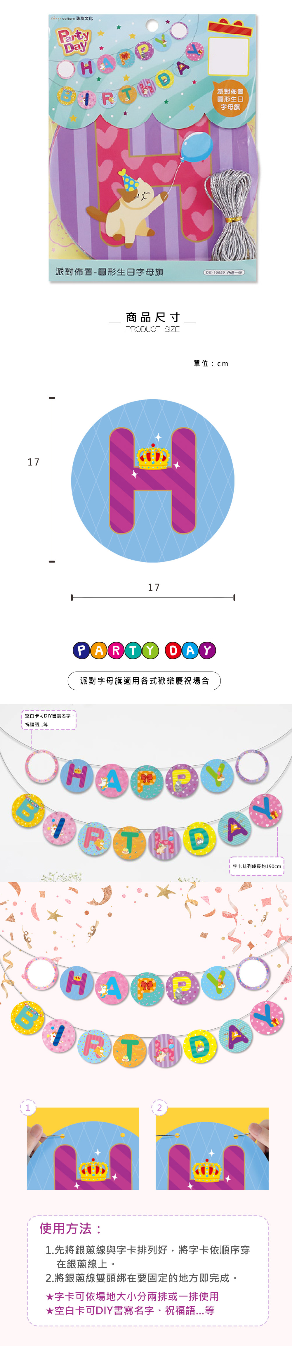• 品名:派對佈置-圓形生日字母旗