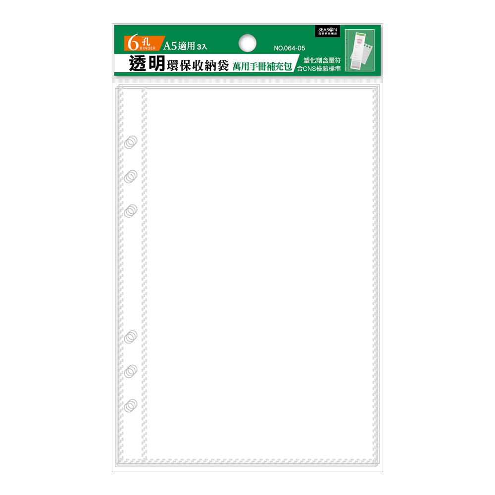 A5補充袋6孔 環保透明資料袋 YZ1064-05