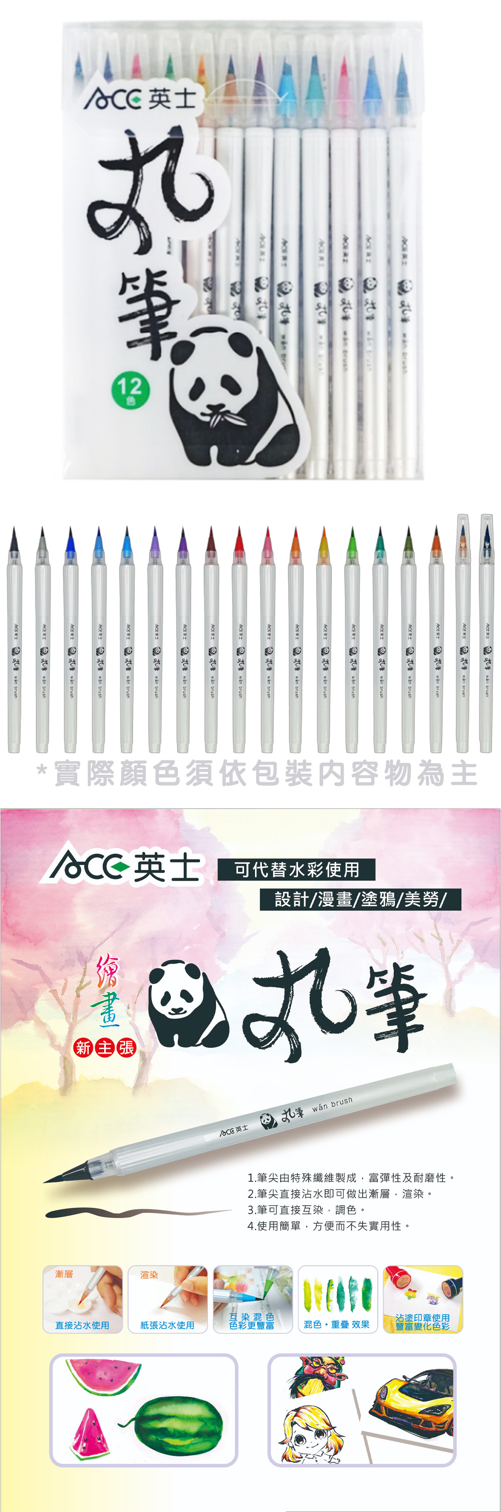 - 沾水使用可變化豐富的層次色,而自由的混合加色,更可使您的繪畫色彩,增添無限效果。
