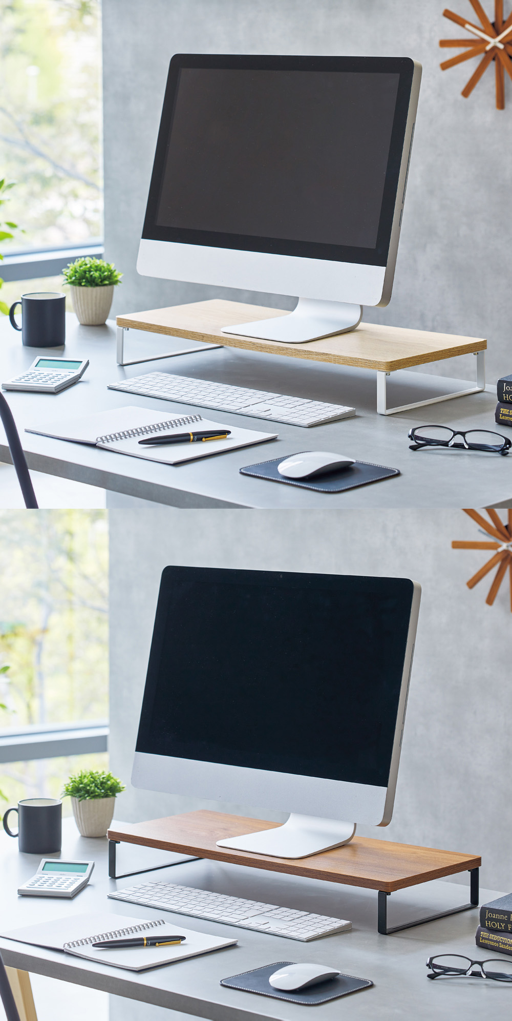 (限購物網販售)LIHIT 木紋白螢幕架