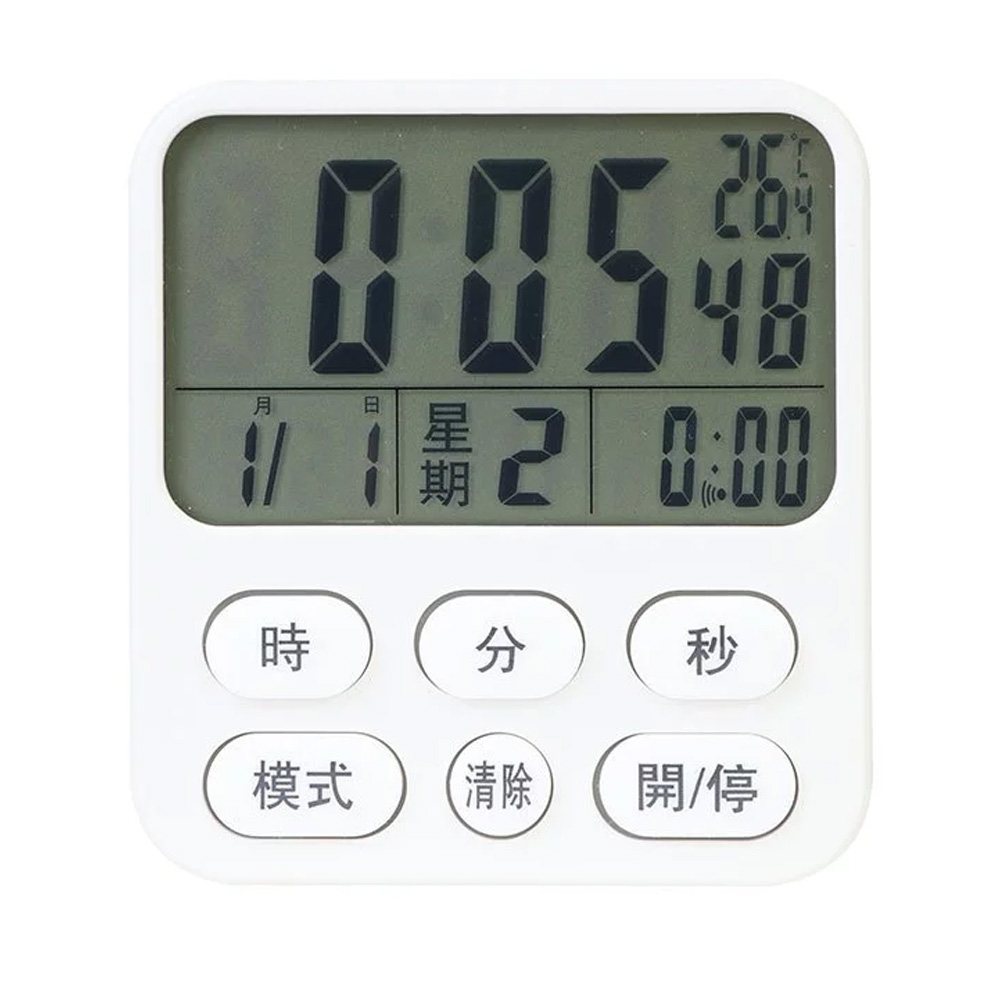• 可設置一組鬧鐘,大音量響鈴提醒