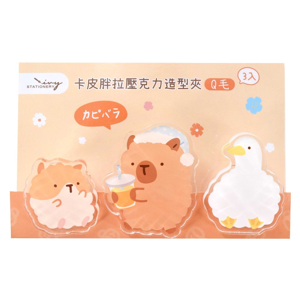 - 品名:卡皮胖拉 壓克力造型夾(3入)