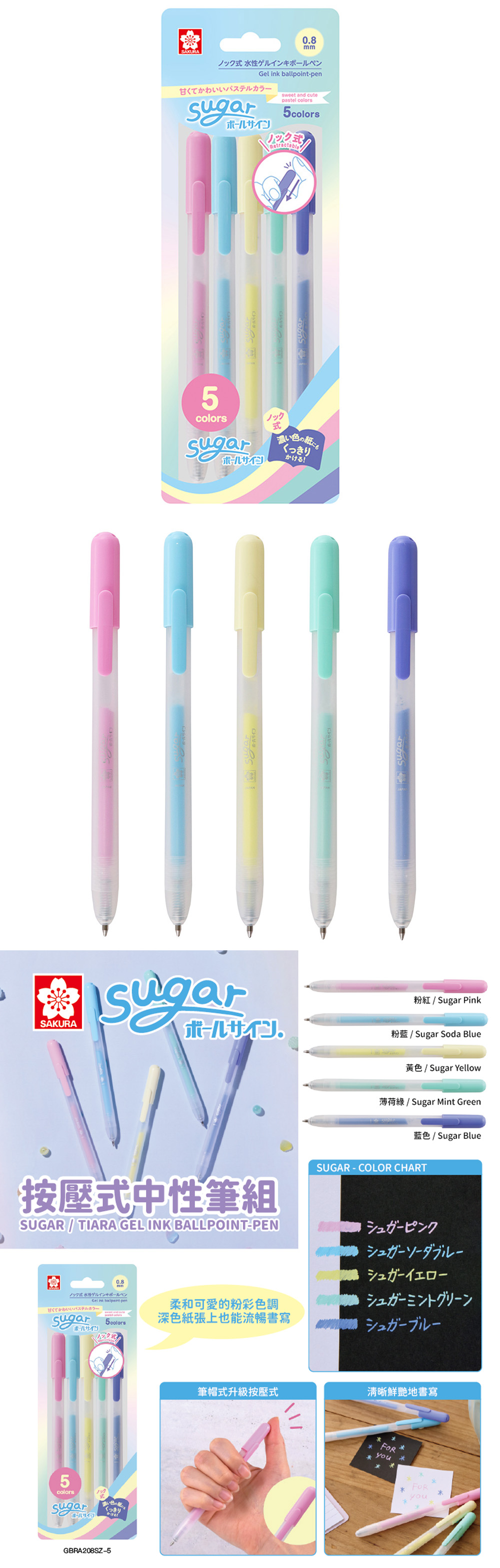 SAKURA按壓式中性筆-柔和粉彩5色組
