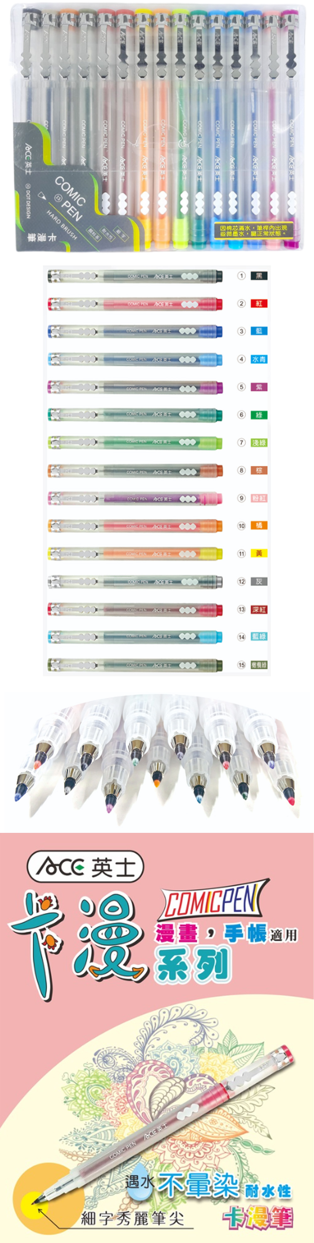 - 跟秀麗筆一樣的硬毛筆尖,勾勒、書寫,可粗可細。