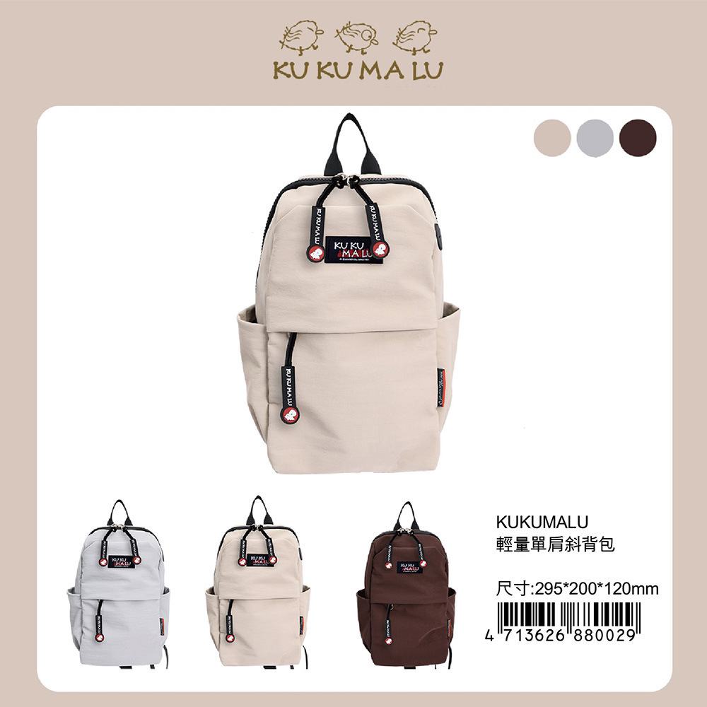 KUKUMALU 輕量單肩斜背包 灰/米/咖啡色 (顏色隨機出貨)