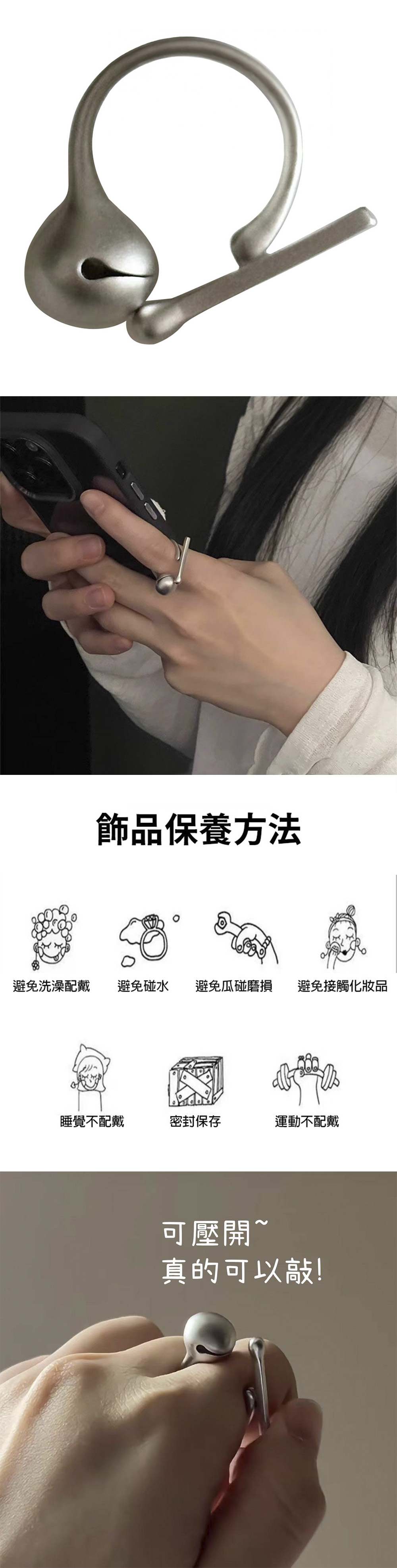 • 木魚紋魚鼓戒指,一內建功能性鼓面,輕輕敲擊即可緩解壓力,讓您指尖感受平靜與安寧。