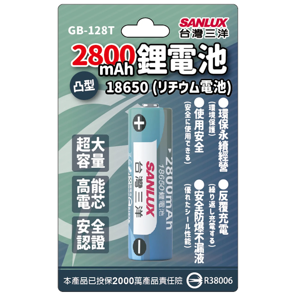 • 品名:三洋 18650鋰電池-2800mAh (凸頭)