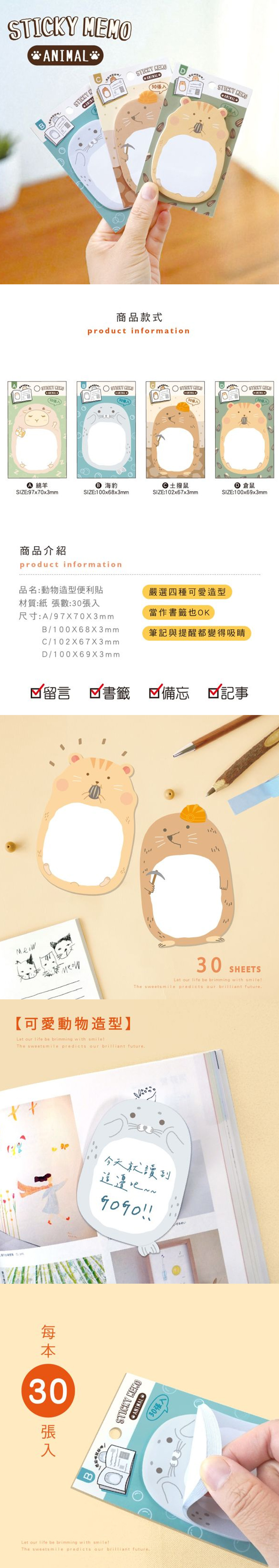 - 名稱:簡單生活 動物造型便利貼