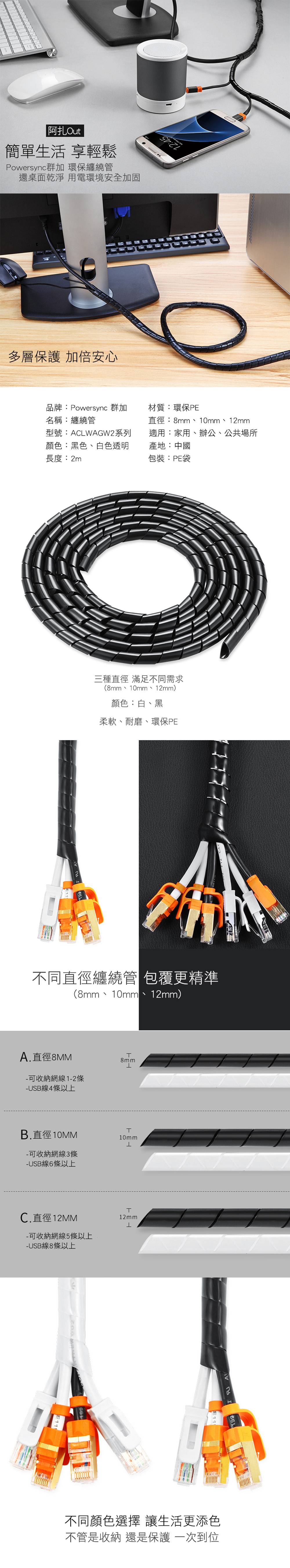• 配件說明:此 8mm 版本包裝內通常不含輔助理線夾,若電線較多建議手動分段纏繞。