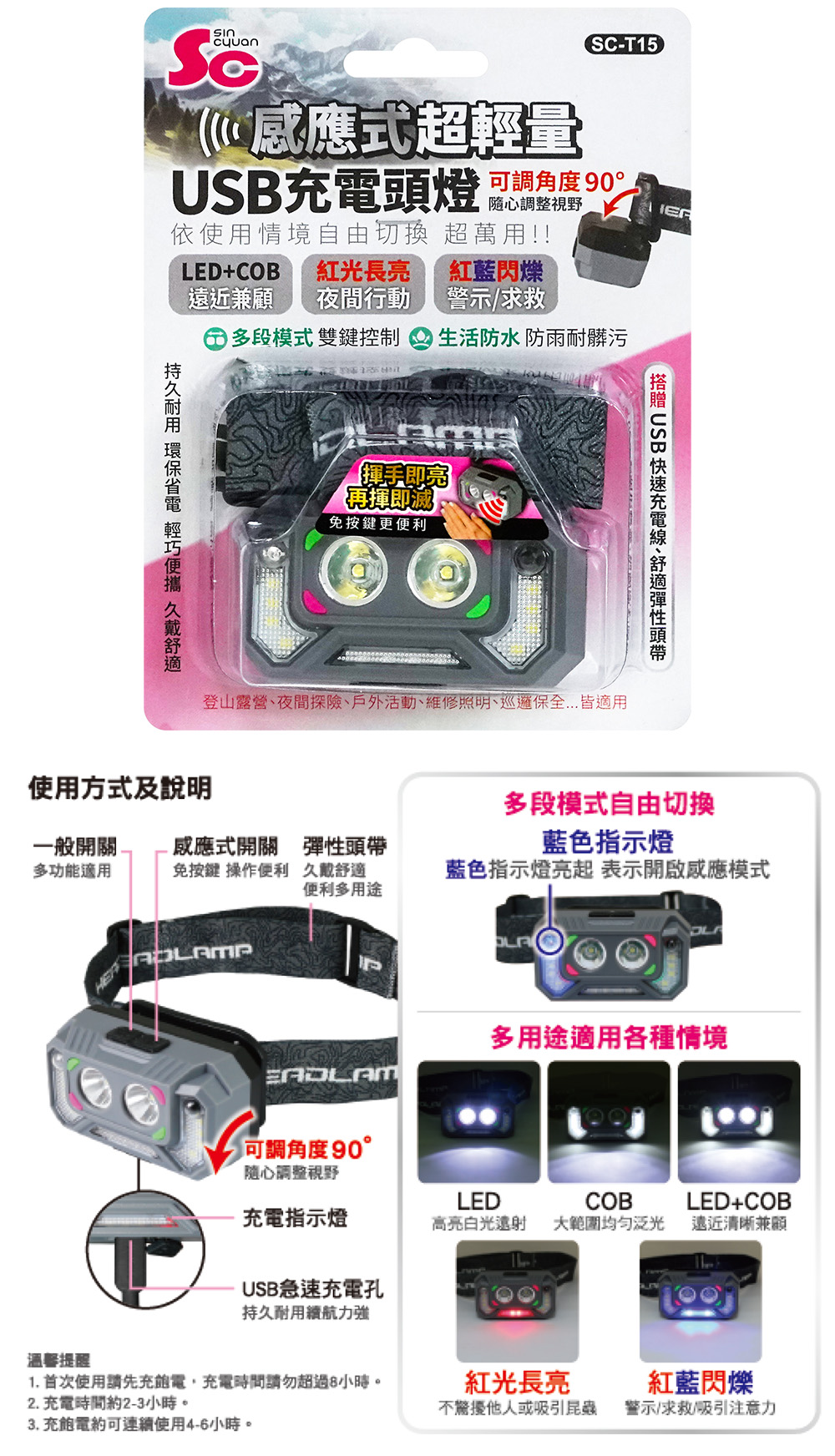 • 名稱:USB 充電式感應頭燈
