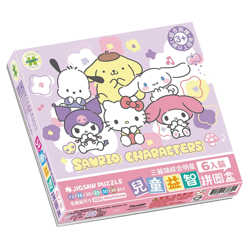 三麗鷗綜合明星(2)兒童益智拼圖盒有底板6入裝
