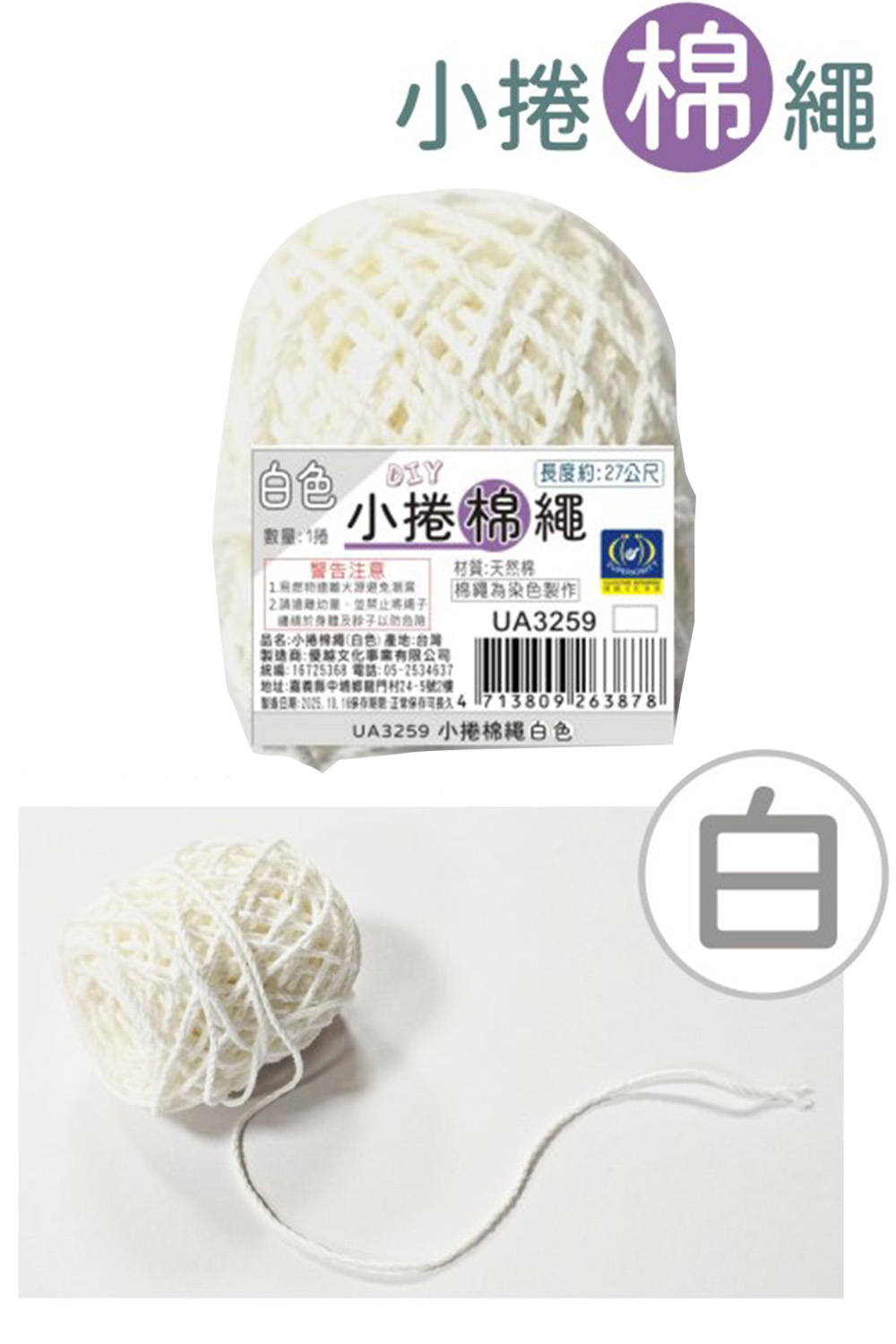 • 名稱:小捲白色棉繩