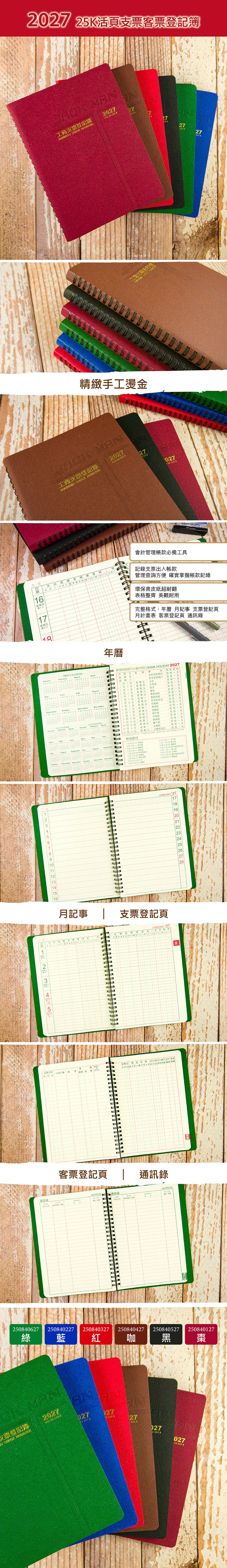 • 名稱:2027 25K活頁支票登記簿