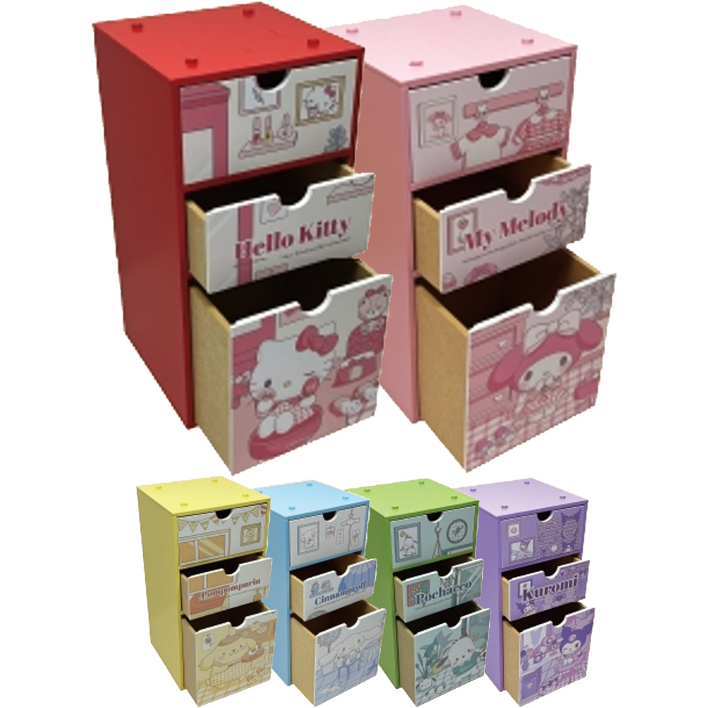 - 三麗鷗正版授權|積木木製直式三抽收納盒