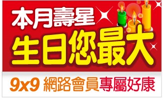 每月壽星禮:本月壽星您最大-9x9網路會員專屬好康